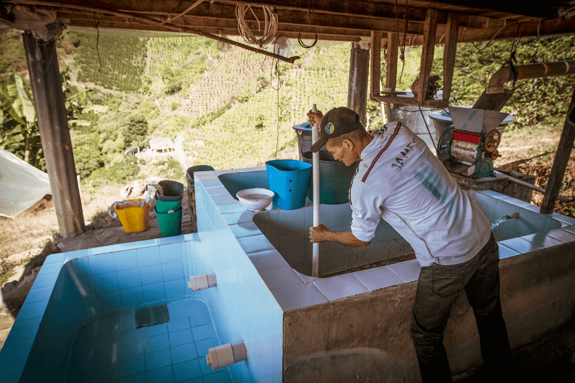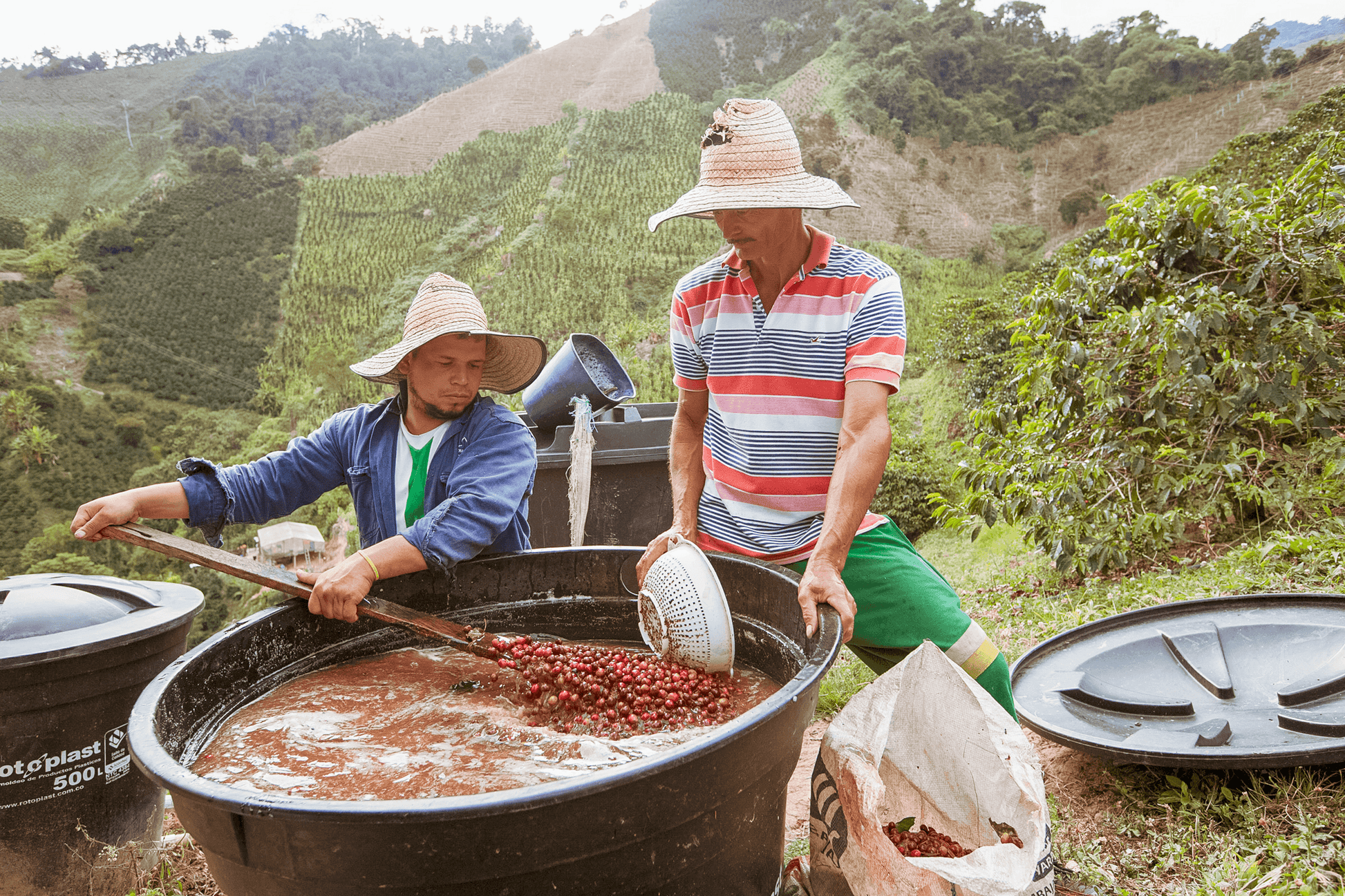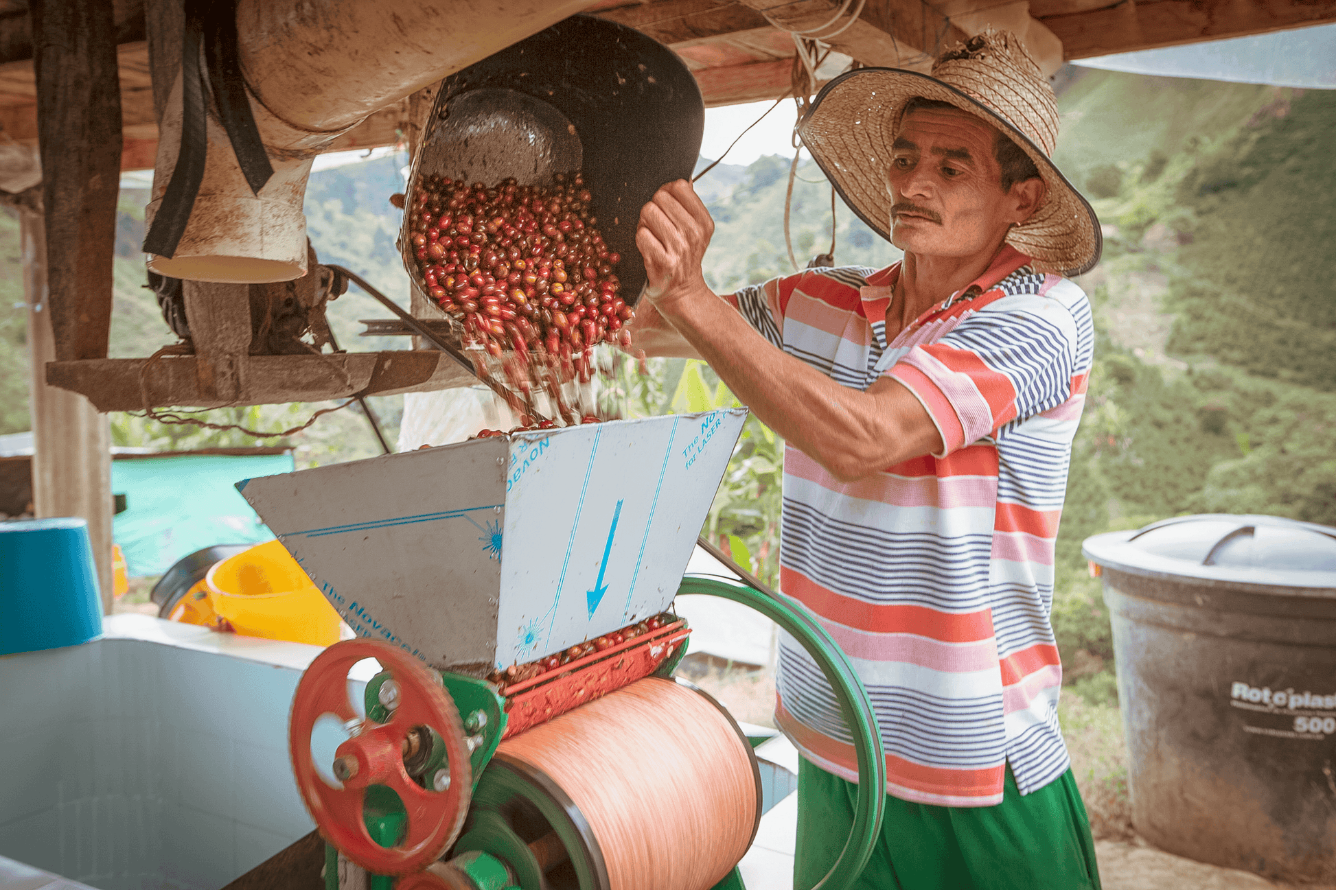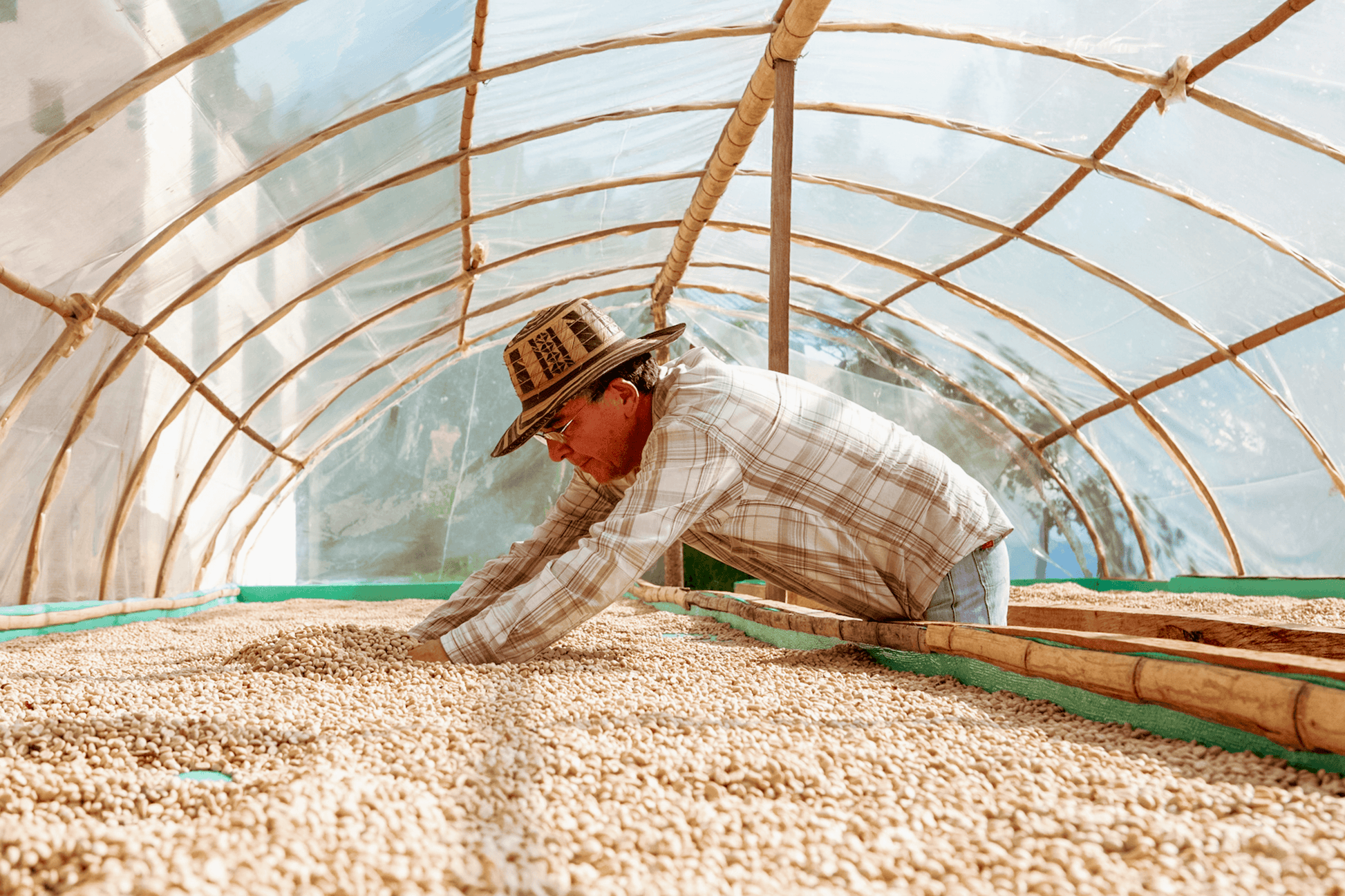 「私たちのコーヒーをお買い上げいただき、ありがとうございます。」 エル・エデン生産者 ミラー・サルミエント 「ミラー・サルミエントとは、サンタマリアの買付ステーションとラ・ビクトリア協同組合を通じて出会い、今年で協力2年目になります。ミラーと妻のジョハニーは18年前に農園を引き継ぎ、コーヒーで得た収益を使って自宅を改築してきました。4人の子どもがいる一家の長女ミシェル(15歳)は、農園の生態系を守るために環境エンジニアを目指しています。 現在、家族はオーガニック農法への移行を進めており、コロンビア国立自然公園局と連携したThe Coffee Questのオーガニックプロジェクトに参加しています。ミラーは肥料作りのワークショップに参加し、コーヒーの木の間に在来種の木々を植えるなど、持続可能な農業に取り組んでいます。また、農園には1ヘクタールの森林保護区があり、ミラーの家族を含む6世帯に新鮮な水を供給しています。 18人きょうだいの中で、ミラーだけがスペシャルティコーヒー栽培に挑戦しており、発酵プロセスの実験も積極的に行っています。その取り組みは私たちの技術チームがサポートしています。」